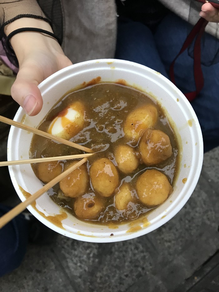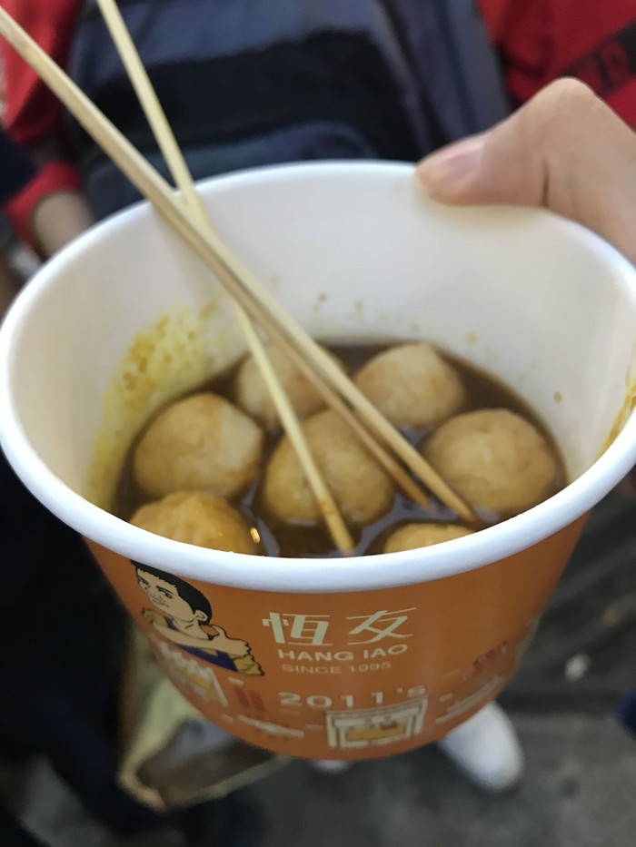 麻辣鱼蛋:这家的鱼蛋其实我不是很推荐,不过想尝试不一样的鱼蛋还是可以尝试一下,跟外面的鱼蛋味道很不同,是有股药材味的,唤醒我台湾药材卤煮的噩梦,不过不难吃,辣味后劲很大,最不好就是里面的鱼蛋没有弹性也没有鱼蛋味这点挺扣分的。