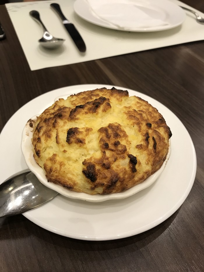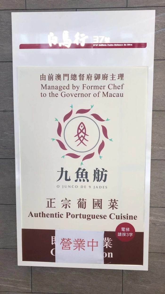 5.九鱼舫,来澳门当然要试试葡国菜,这是一个澳门人推荐性价比超高的葡国菜,打着前总督府大厨的名号(传言前身是九如坊)。地理位置也很好,就在议事亭前地广场一直往上走,在快要拐进波鞋街附近,位于三楼,附近有卖鞋和游戏机。真的没什么人知道,问附近的店员也不知道,上去也没什么人,客人基本都是本地人或者外国人。葡国菜一般比较贵,这间人均才100左右,不过不得不说葡国菜也不是很合我的胃口。这里服务员基本是东南亚人,会一点点粤语,结账支付宝和微信银联都可以。唯一一点扣分的是这间葡国菜居然没有送餐前包,之前做攻略这间好像会送墨鱼汁包的。