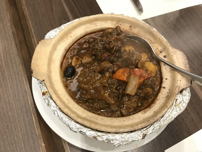 红酒烩牛尾:还行,牛尾炖的很烂,肉不错的,但是红酒烩这种带点酒涩的成熟味道不适合我。