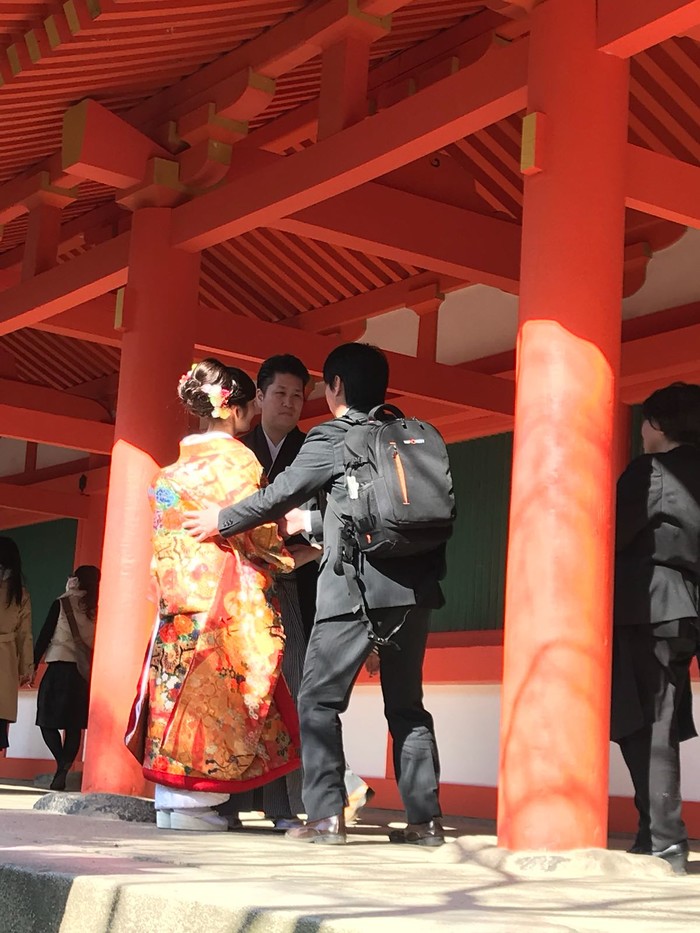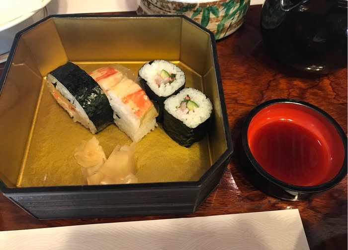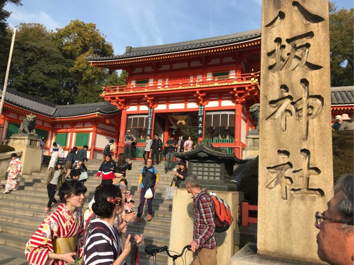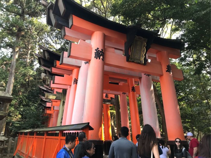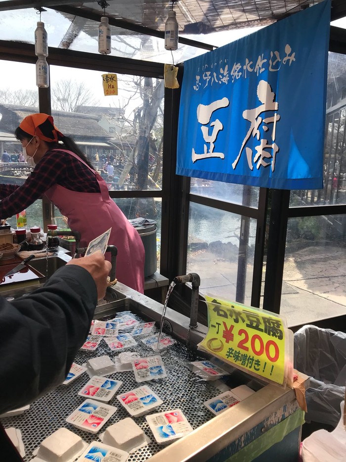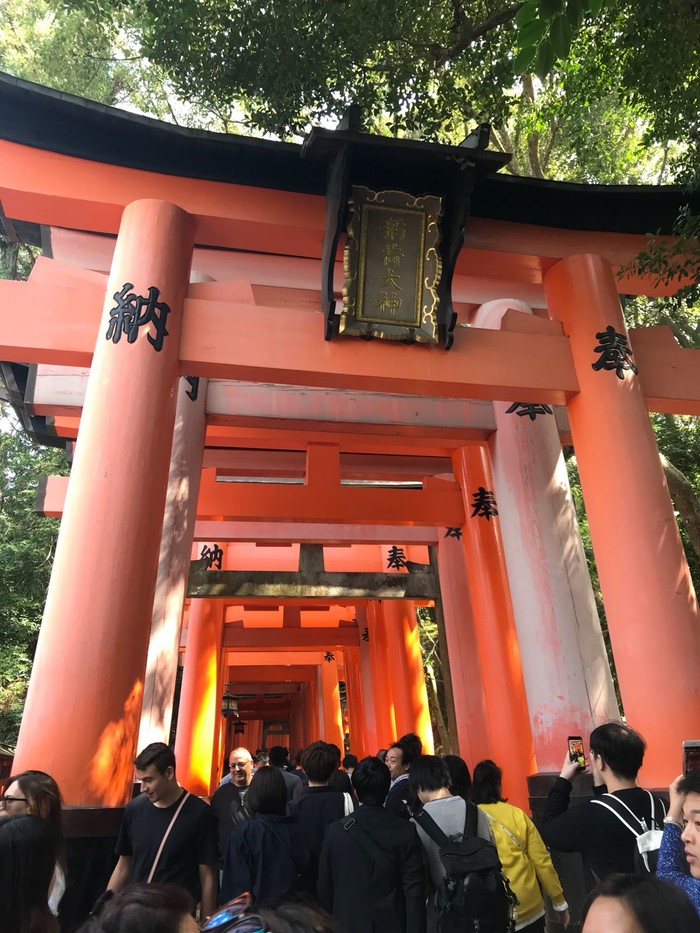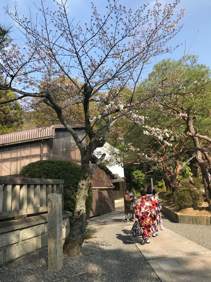 今天要比前面一天要早一些出门,我们要去京都玩,用的是京阪电车一日游券,坐地铁去伏见稻荷大社,在伏见稻荷大社的门口一家和服店提前网上预约了和服租赁,本来说好两人一起穿和服的,但是由于我在其他人的攻略游记中说到这个和服穿上后腰肚子这块会特别的勒而且穿木屐走路特别累,所以本来我打算穿的话也只穿一个伏见稻荷大社,穿完就还还能定定心心放松的吃中饭,但是兔子表示一样都花了这些钱穿一会会儿就还不划算她要穿一天到其他的分店还衣服,我考虑再三还是决定放弃不穿了,最后就变成兔子一个人穿和服负责美美的,我就当她专属摄影师负责拍照的,今天又是一天大暴走,从伏见稻荷大社开始,坐地铁去清水寺,下了地铁又是一路走,爬山上清水寺的途中随意找了一家小店把中饭先解决了,我们俩一人点了一碗类似盖浇饭,这娃不听我的吧,本来被和服弄得又累又勒的,还要跪坐在榻榻米上吃饭,本来一碗饭分量就没有很足,这下好了只吃了三分之一就吃不下了,吃完饭一路爬山清水寺再从清水寺一路走下来,上去一条路下来走另一条路,然后走过三年坂二年坂,沿街走到八坂神社再到祗园,到了祗园先找租和服的分店换了衣服,再到花见小路,穿过小路转到一家京都老牌专做豆腐的料理,点了一份豆腐怀石料理和一份豆腐火锅料理,人气不错哦我们出来发现排长队了,再一路返回走到地铁站,坐地铁回大阪,出了地铁站又去超市里买东西,回民宿后这娃因为今天受苦受累了去附近泡温泉的地方泡温泉去了,我留在民宿里整理东西顺便洗漱,等兔子回来了吃夜宵,今天的夜宵是樱花樱桃酒配寿司