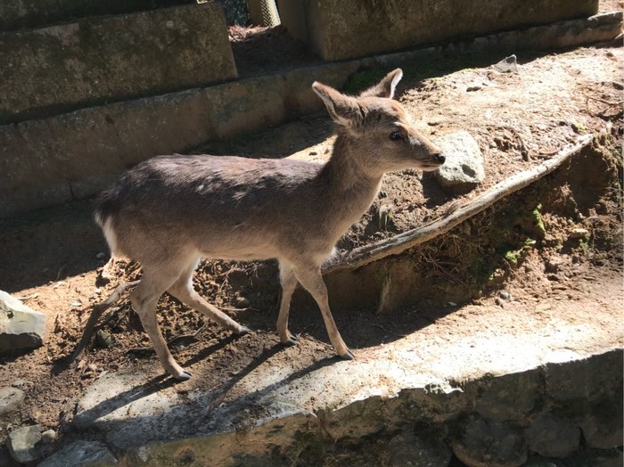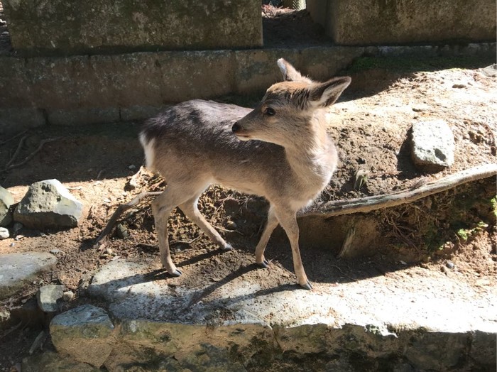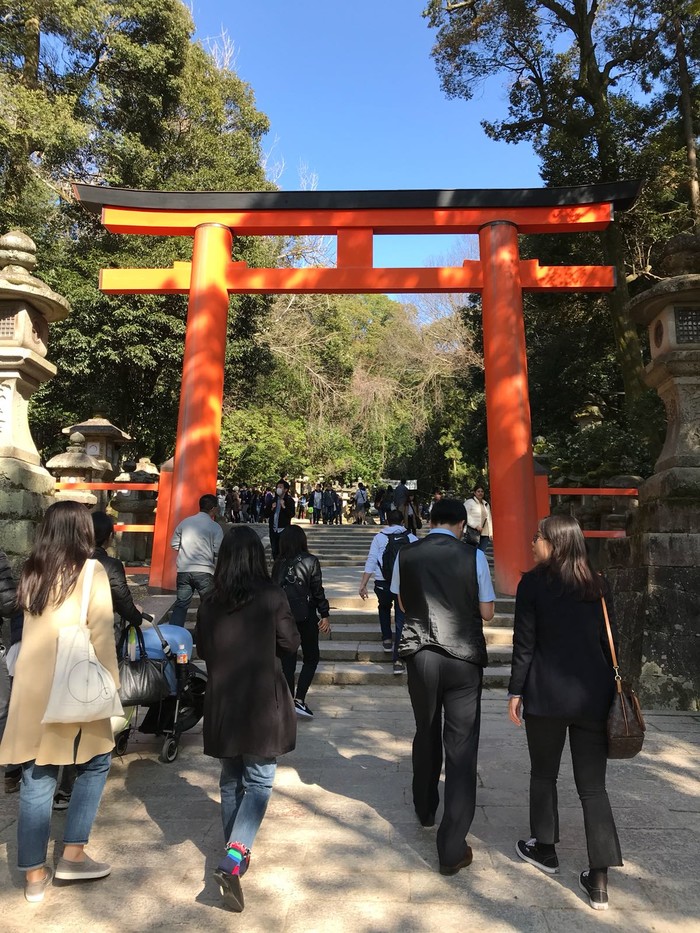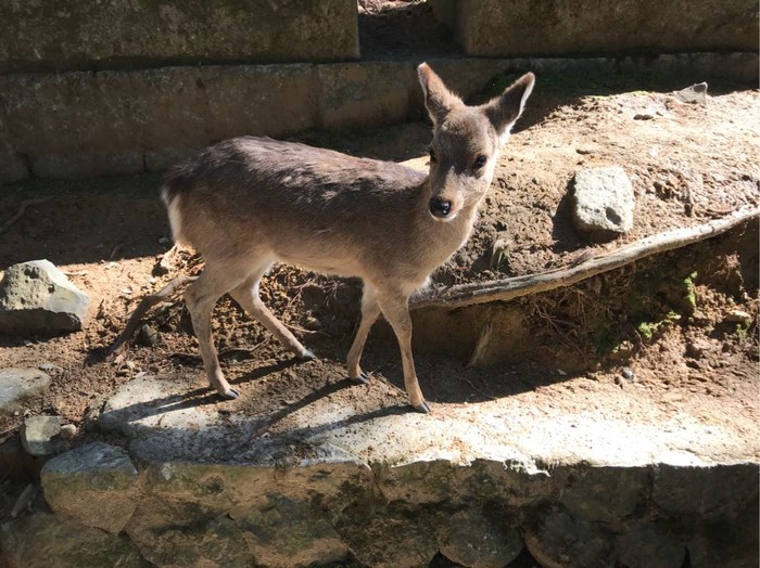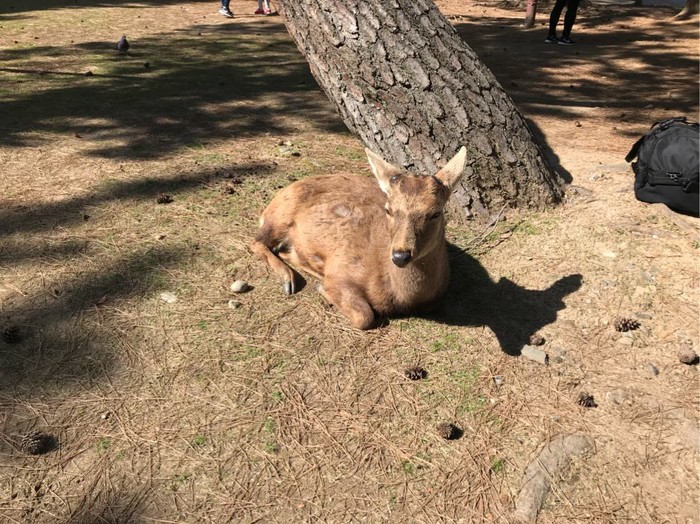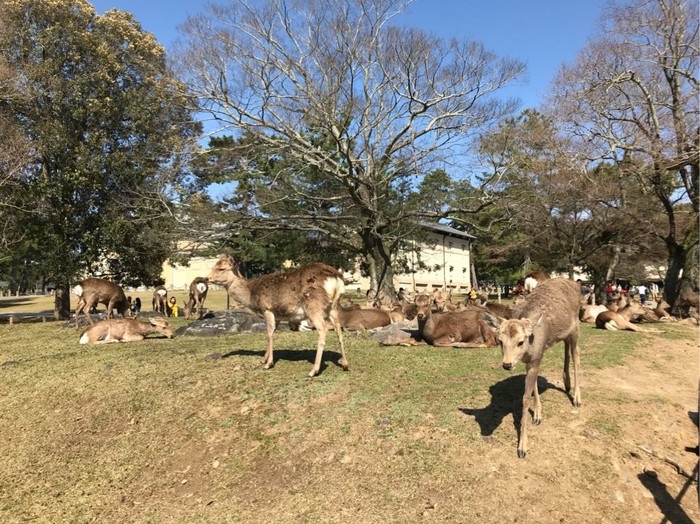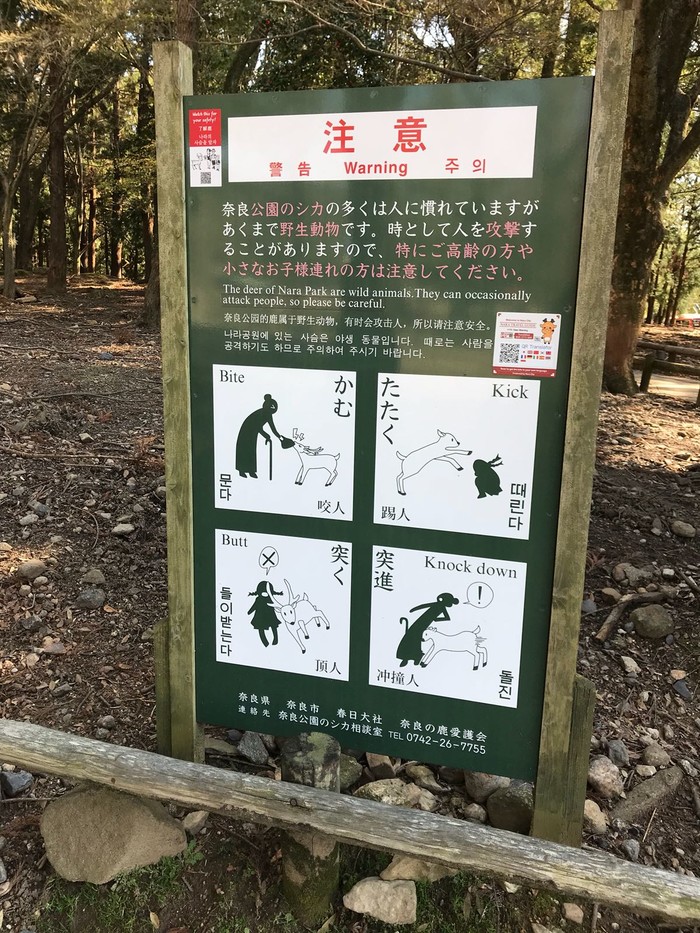 吃完中饭就去奈良公园去看奈良小鹿了,不知道我们去奈良的时候是樱花已经谢了呢还是还没有开,樱花特别少不仅是树少开的花也少,特意买了鹿饼喂小鹿,遇见了会鞠躬讨吃的小鹿,也有调皮捣蛋欺负小朋友的小鹿,也有穷追不舍的小鹿,还有小小的可爱的小鹿,沿着公园外围一路走至春日大社,路上还看见了一只在商店门口鞠躬讨吃的小鹿,店员也很有爱心的给它丢了一小块卷心菜,在春日大社里还看见了一对在拍婚纱照的新人,然后各种大暴走寻找某只要看的什么古遗迹,再然后又是一顿暴走说是回地铁站坐地铁去大阪,这货领着我走了大半天,还好我多嘴问了一句,不然她准备坐其他线的地铁线路去大阪了,完全忘了我们还有行李寄存在某个地铁站里面了,吭哧吭哧的终于到了大阪,地铁站一出来就看见一家大型超市,两人决定先去找民宿,安排妥当后再出来吃晚饭和逛超市,匆匆忙忙的放好行李稍微的休息了一下就出门找晚饭吃了,晚上7点这边商场里好多店都已经打烊了,要么就是我们想吃的店只卖乌冬面其他的都卖完了,所以最后找了个卖咖喱乌冬面的店,两人各点了份不同的咖喱乌冬面吃,然后去楼下的超市逛逛,买了好多零食和冰激凌,回民宿再吃夜宵,今天夜宵吃的是梅子酒配蒲烧鳗鱼,然后轮流洗漱准备睡觉觉了