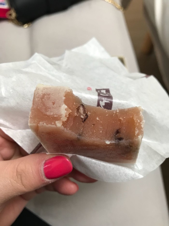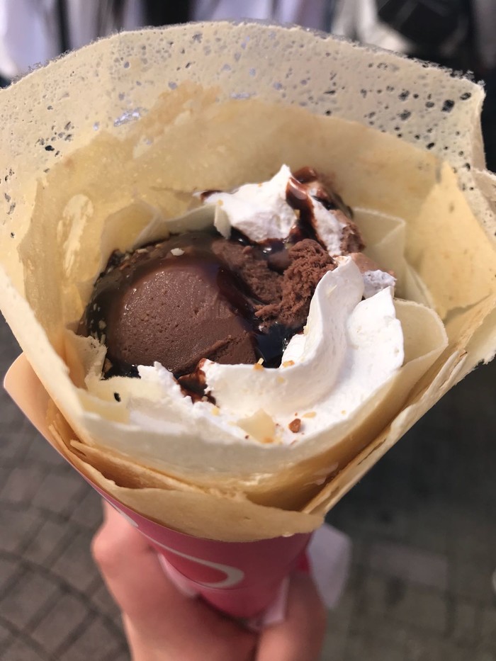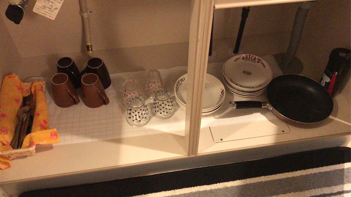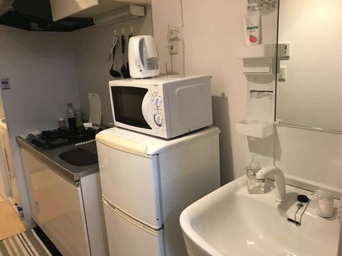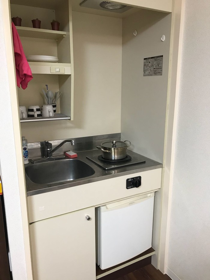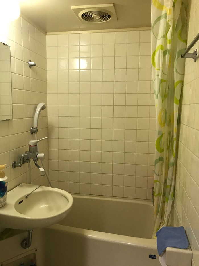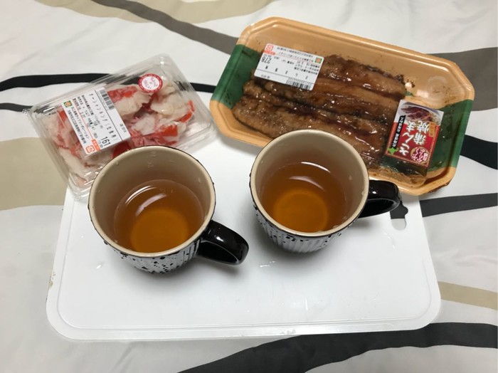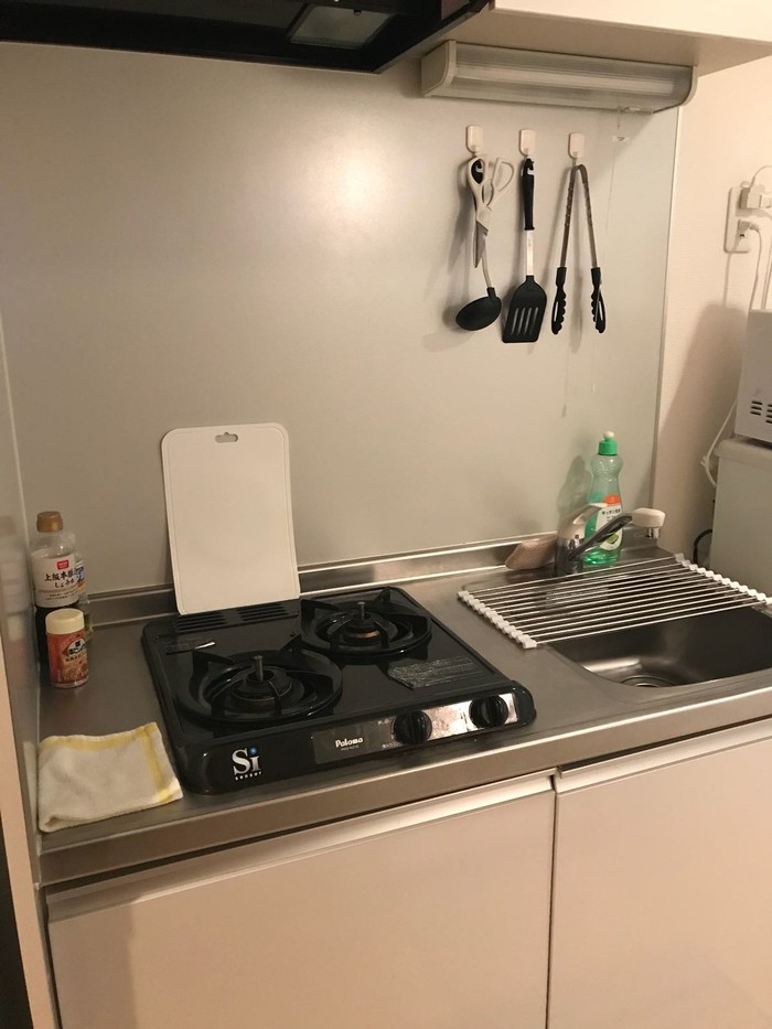 日本的出租车后车门是自动门,你拦了车司机按开关自动帮你开门,好先进的说,上了车直接给司机看地址,可能因为给他看的是小路的门牌他这地方不太熟,他直接按照区域和邮编方向在导航上面输入,然后再跟着导航走,我们看到了这边路口认识了就让他停在大路上,我们自己走进去的,回到民宿整理东西的时候发现了那双不见地筷子(◎o◎)(◎o◎)(◎o◎)估计可能是在拿进拿出可乐的时候不小心弄的,虽然不是故意为之但还是觉得好囧。。。 洗漱洗漱吃夜宵,今天的夜宵是昨天晚上超市买的冰激凌球