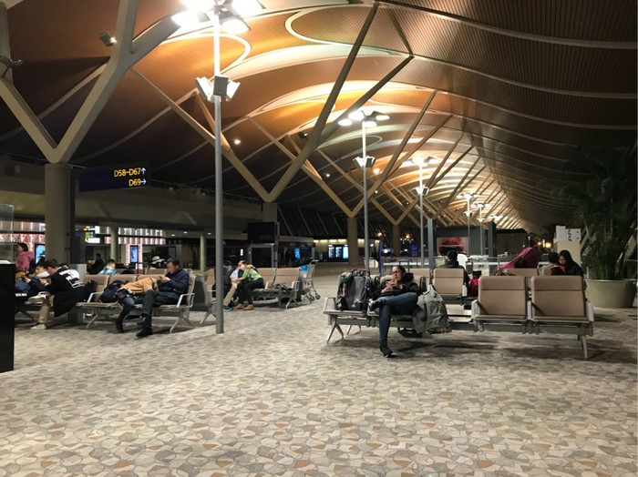 由于我们订的是廉价航空,一早六点钟的飞机,如果提前至少两个小时到机场的话就意味着至少三点早出门拉擦头,一个考虑到这个时间点有点尴尬再加上前几天做梦梦到我坐飞机迟到了,所以妹子们就决定提前一天出门去机场过夜。