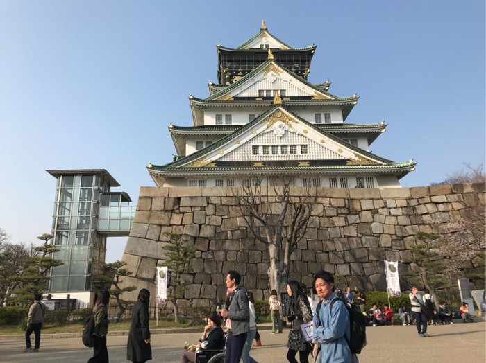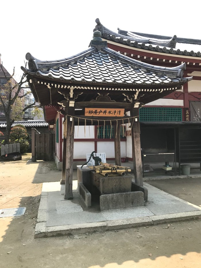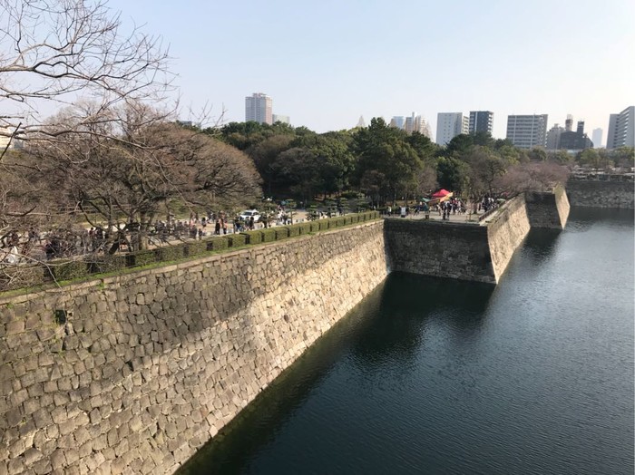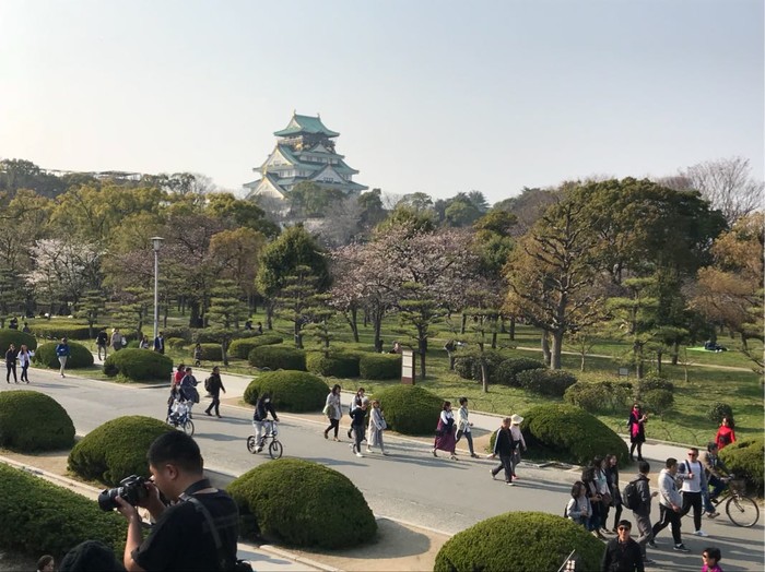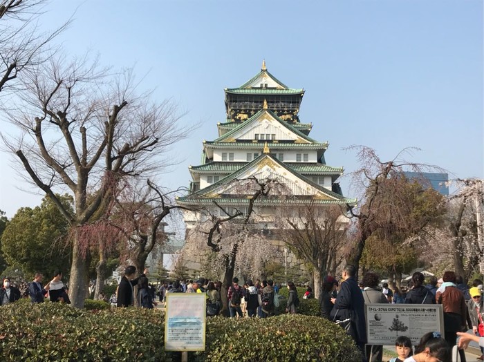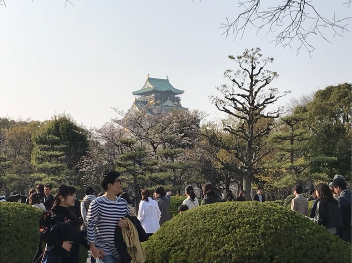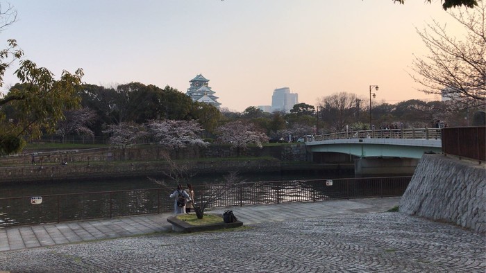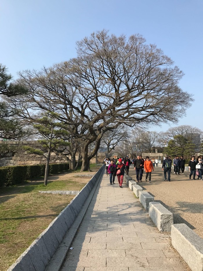 早餐吃了7-11的草莓三明治,路上是随处可见的各种大大小小形状不一的井盖,今天因为是大阪一日游,所以用的是大阪一日周游券,坐地铁出行,出了地铁站后跟着导航一路走到四天王寺,沿途经过一家中学,上坡路上的围墙上都是樱花树,里面是一个大操场,一群学生们在打棒球比赛(练习),到了四天王寺就看见了一颗大大的樱花树粉粉的特别好看(●◡●)ノ,后面有一个大大的庭院,小桥流水春意盎然生机勃勃的特别的漂亮,然后坐地铁去黑门市场吃午饭,黑门市场里逛了一圈有好多的小吃和买伴手礼的店,在一家小店里面解决了中饭,吃了鳗鱼饭和拉面,吃完后坐地铁去大阪城