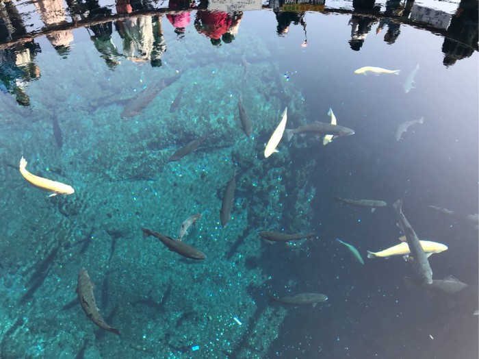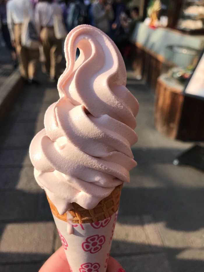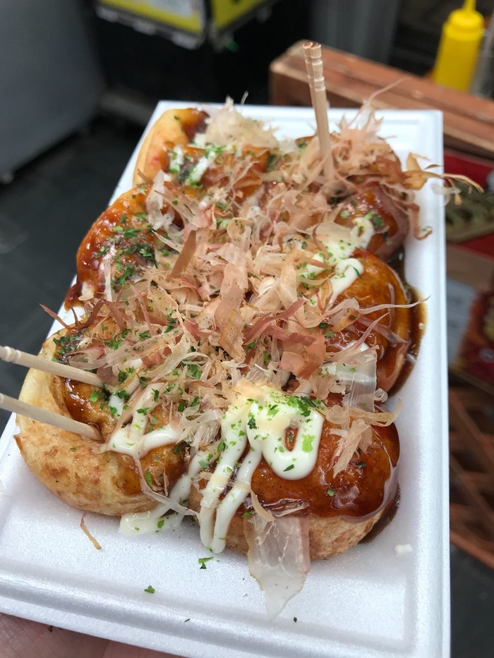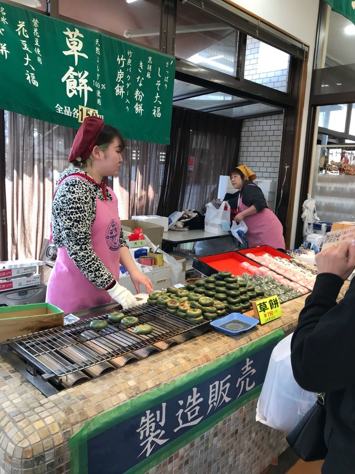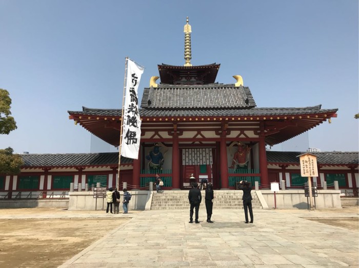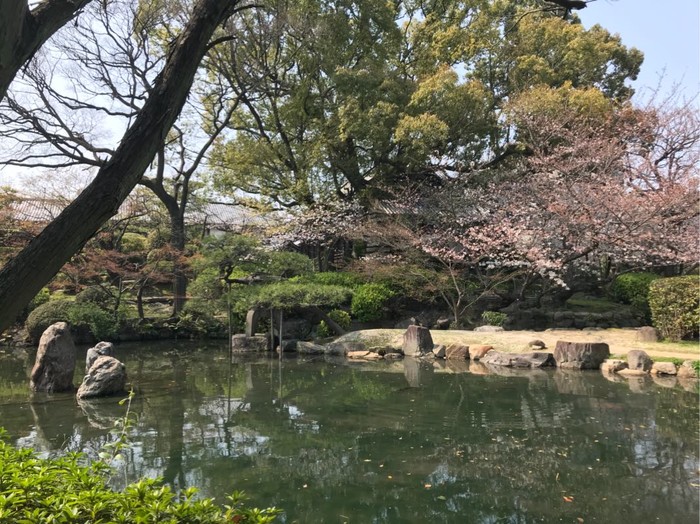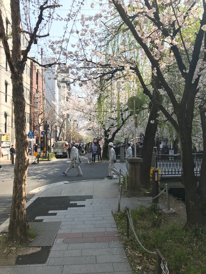 早餐吃了7-11的草莓三明治,路上是随处可见的各种大大小小形状不一的井盖,今天因为是大阪一日游,所以用的是大阪一日周游券,坐地铁出行,出了地铁站后跟着导航一路走到四天王寺,沿途经过一家中学,上坡路上的围墙上都是樱花树,里面是一个大操场,一群学生们在打棒球比赛(练习),到了四天王寺就看见了一颗大大的樱花树粉粉的特别好看(●◡●)ノ,后面有一个大大的庭院,小桥流水春意盎然生机勃勃的特别的漂亮,然后坐地铁去黑门市场吃午饭,黑门市场里逛了一圈有好多的小吃和买伴手礼的店,在一家小店里面解决了中饭,吃了鳗鱼饭和拉面,吃完后坐地铁去大阪城