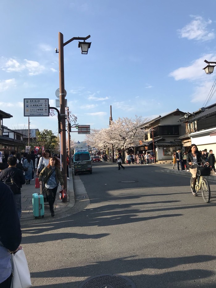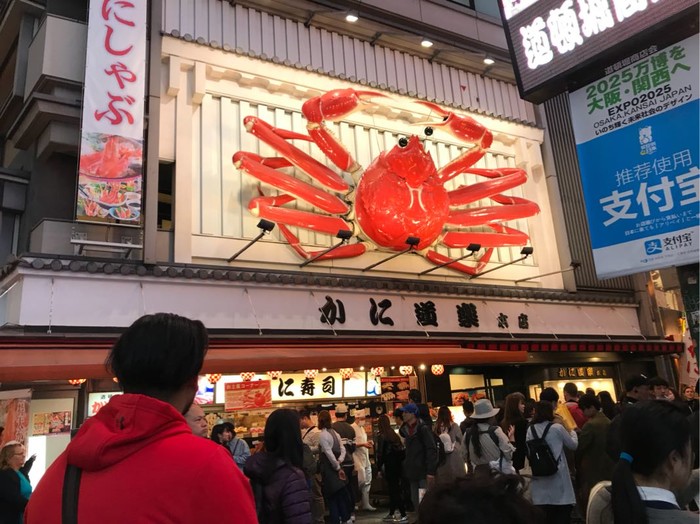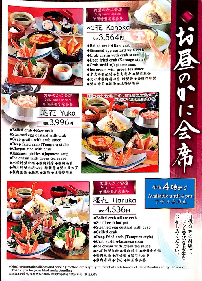 今天也是京都一日游,用的是阪急全线一日游券,出门直接做地铁到京都,今天做的这趟车是双层的地铁线,到京都三条,就在昨天晚上吃豆腐料理再过去一点的地方有一条商业街,三条商业街走到底就是京都店的蟹道乐了,今天在蟹道乐吃午餐,这边可能是因为有三层楼的关系,去了没有排队直接就有服务员带我们到座位上,两个人一人点了一个午间螃蟹宴席套餐,兔子选的3996的悠花,我选的是4536的遥花,我俩除了一个是蟹肉通心粉,一个是螃蟹小火锅还有一个是蟹肉釜饭,一个是蟹肉寿司以外其他的东西都是一样的,总体来说这顿螃蟹宴没有惊艳到我,没有网推想象中的那么好吃吧,吃完中饭再坐地铁去岚山,在那边逛,看美丽的风景,大片的樱花树林,赏漂亮的樱花,走过渡月桥,经过岚山公园,再至天龙寺,晚间回大阪心斋桥,从心斋桥一路走到道顿堀,晚饭在道顿堀吃烤肉,还有章鱼小丸子,吃完稍许再逛了一下就回民宿了,明天要去东京要回去整理行李了,等我上床睡觉的时候已经快12点了