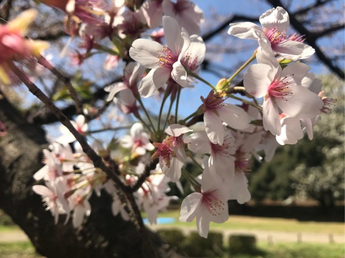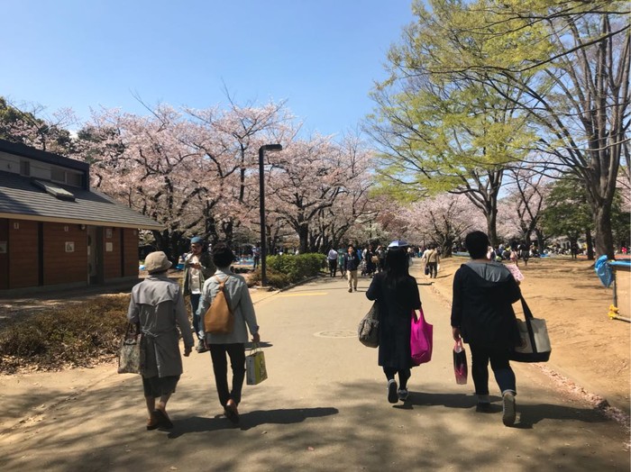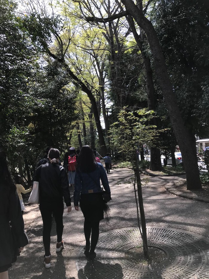 出门晚了就先坐地铁去的涉谷,某只就为了跑过来看著名的十字路口,有点小囧。。。然后从涉谷徒步暴走至有名的代代木公园,途径一家小书店,在门口就瞅见了百变小樱,还看见了开在日本的名创优品和小肥羊,还经过了日本的消防署,好不容易走到了代代木公园,风景超级美还有大片大片的樱花树林,两个人在公园里走走停停,各种拍照