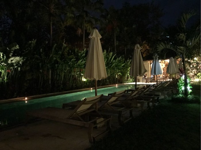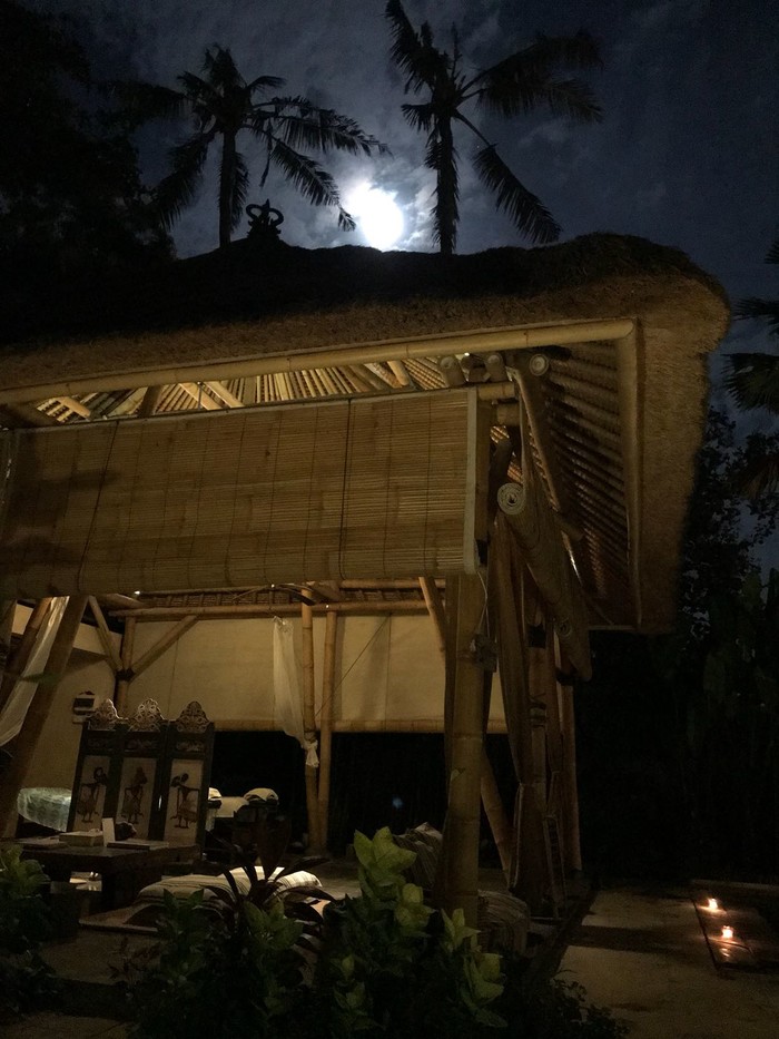 下午5.30回到酒店后就拿上行李前往下一个MoonBamboo山庄,(在这里提醒各位,两个女的或独自一人的,千万千万不要在6 7点后像我们一样坐车转移酒店,特别是比较偏僻的地方。晚上的巴厘岛…你懂的,这里省略一万字)
