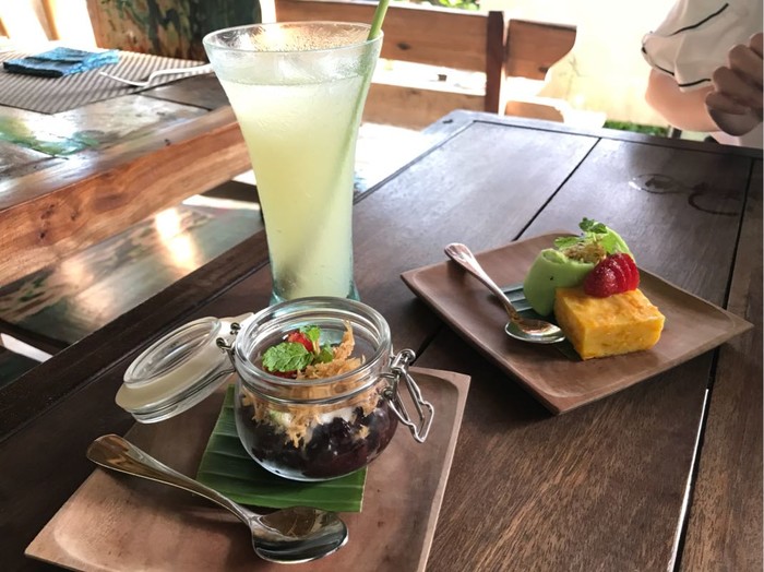 去到酒店check in会先上两份下午茶点(我们两个人),那个罐罐里的是红豆加椰子丝,好好吃!)