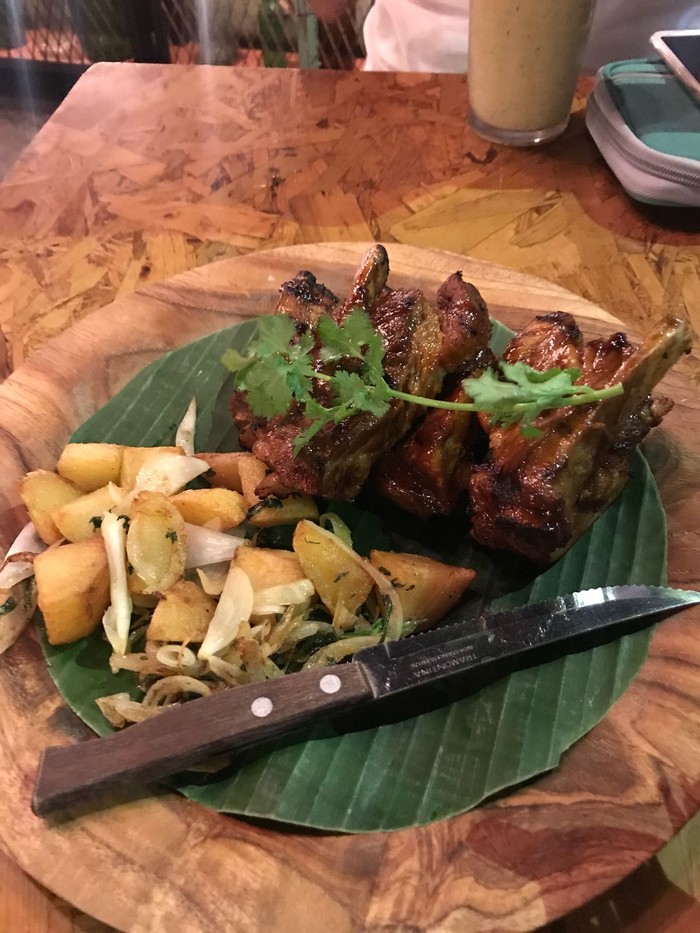 来到巴厘岛的库塔怎么能不尝下当地出名的烤排呢!和鲜榨牛油果汁呢,真的很好吃哦!