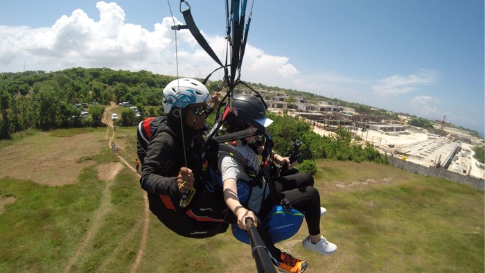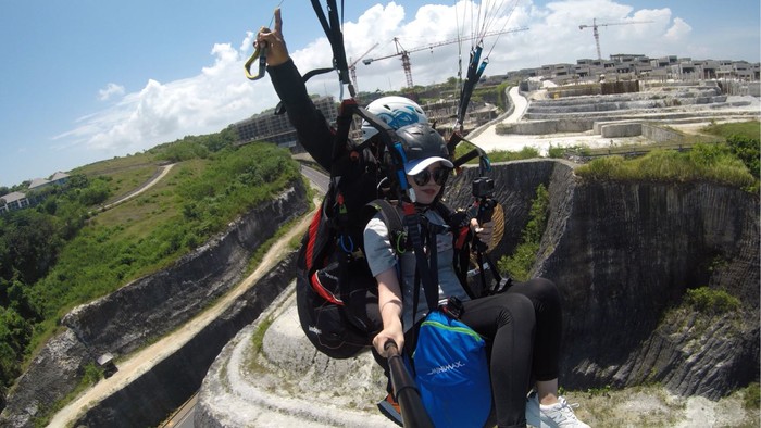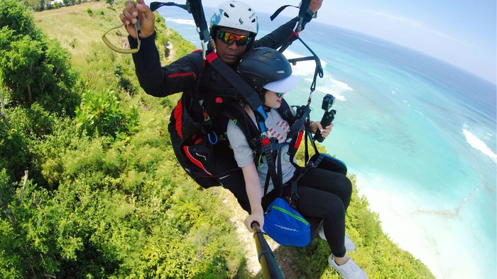 后面问司机哥哥,原来这个滑翔伞是中国的专玩项目,飞的范围很小,来来回回就一个位置溜达,跟后面的大哥说可不可以滑去海平面上,他都说不可以。在上面就10分钟左右,全程会给一个Gopro,我自己也带了一个拍第一视角,这个项目不推荐。