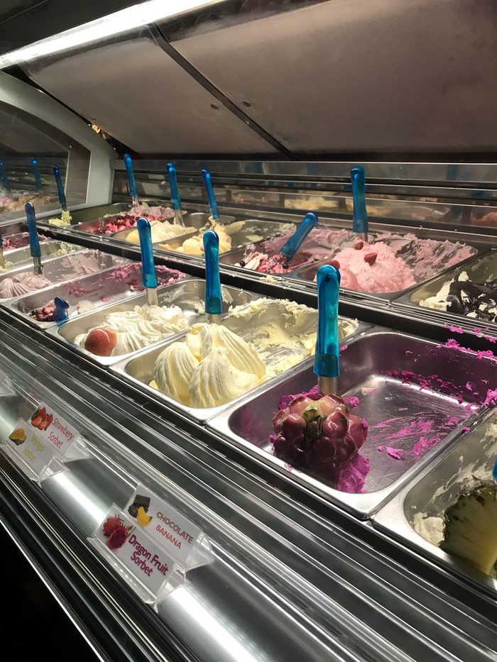 晚上酒店附近觅食,吃完回酒店途中看到一个意大利雪糕店,炒鸡多种口味!买了两杯小杯,一杯可以选两种口味,我选了牛油果和桑果的,好好吃!超棒的!可是太好吃了,顾着吃,我忘了拍照…