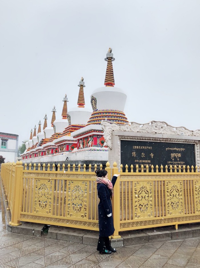 次日去了塔尔寺,一个佛教寺庙,门票70元,藏族,土族,蒙古族免费,不要问为什么?这天下了大雪,很美,寺内的酥油花馆让我很震撼,讲解员说酥油只能在零度以下上才能制作花或者其他艺术品,所以制花的人要把手放零度的水中等手也冷却才开始捏花,有的手都废了,感叹艺术家为艺术牺牲奉献的精神。