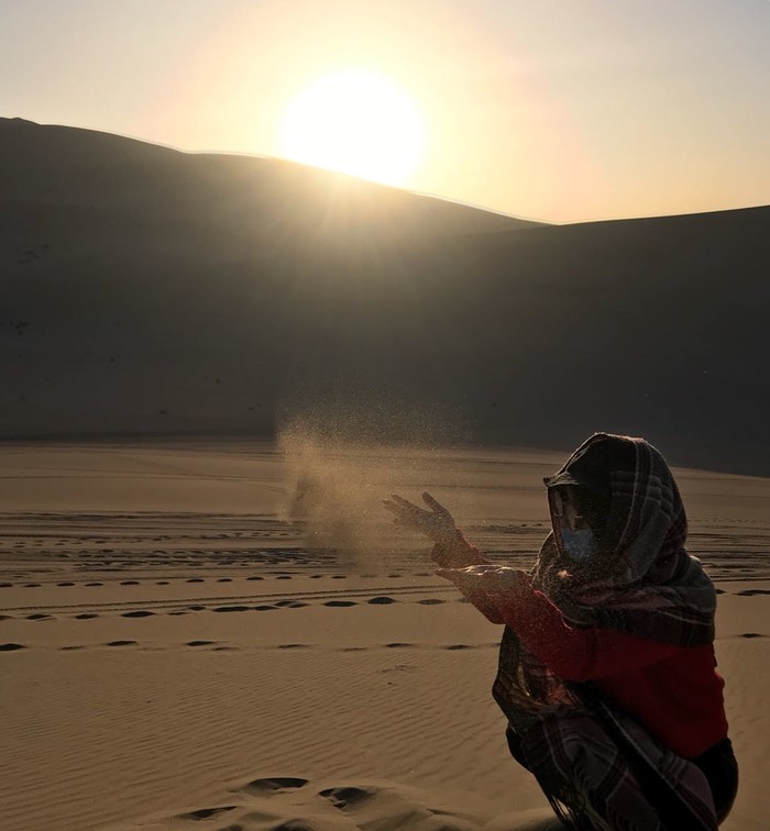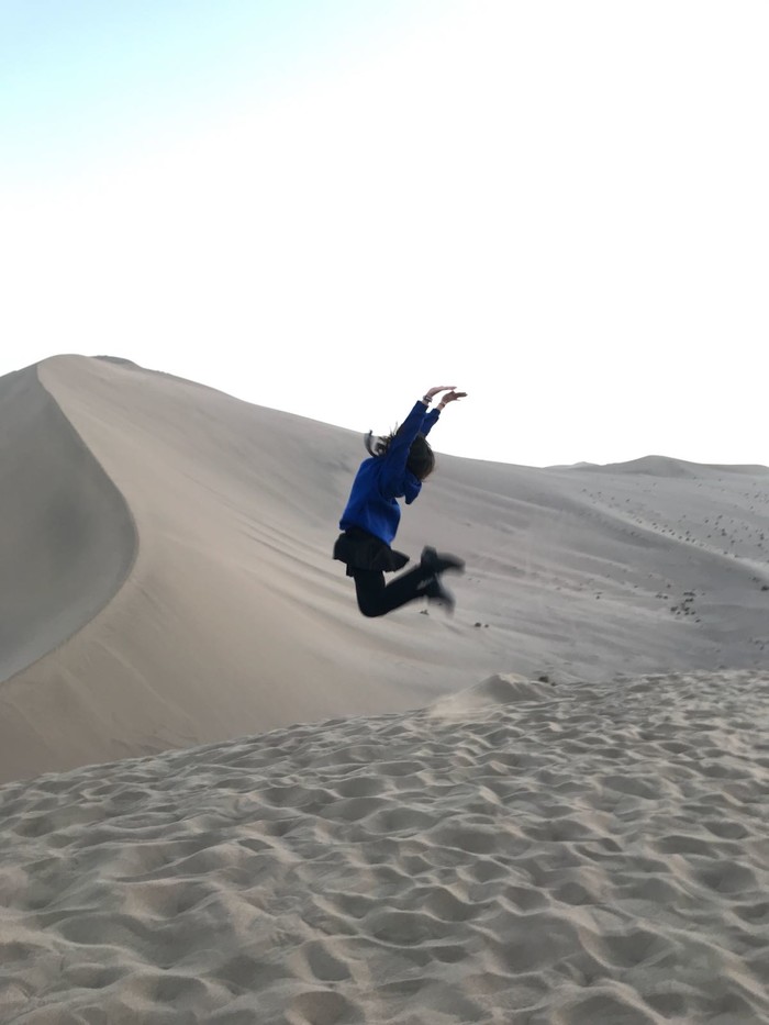 不想看日出的朋友可以选择坐晚上的火车直达敦煌,淡季只有火车,旺季有动车,火车几乎全是凌晨的,7个小时,第二天早上到敦煌。我们是在坐动车到酒泉,在张掖的时候,让一个司机联系了他的一个朋友,在酒泉接我们,80一个人,很划算,5个小时到敦煌—这是一个很小很小镇,住的是阿楚姑娘音乐电影青年旅社,老板是一个文艺青年,住宿条件很勉强,晚上去逛了夜市,不推荐在夜市吃饭,贵又不好吃。