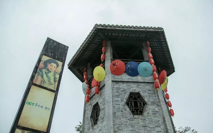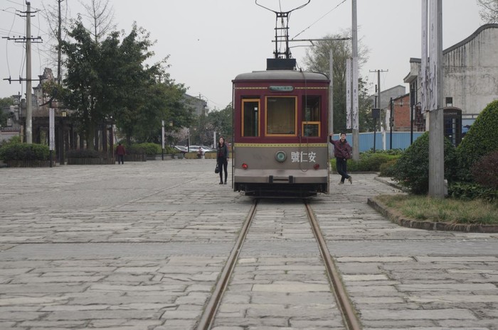古街建筑为明清风格,街上悬挂着色彩艳丽的油伞,马路上的有轨电车——安仁号,还有高挂的红灯笼、平整的青砖石、墙上的美人图,被时间抚出细纹的老木房,似乎都在诉说这个古镇的悠悠岁月。