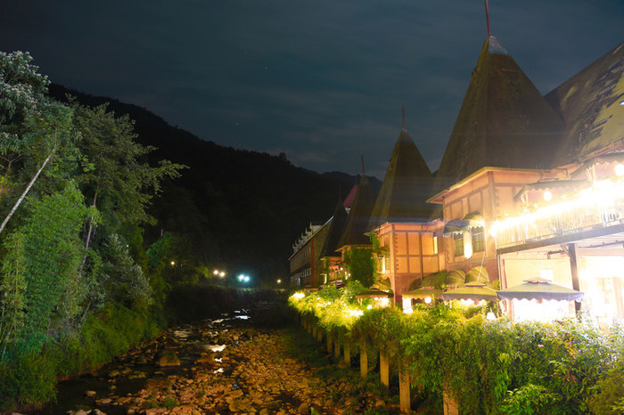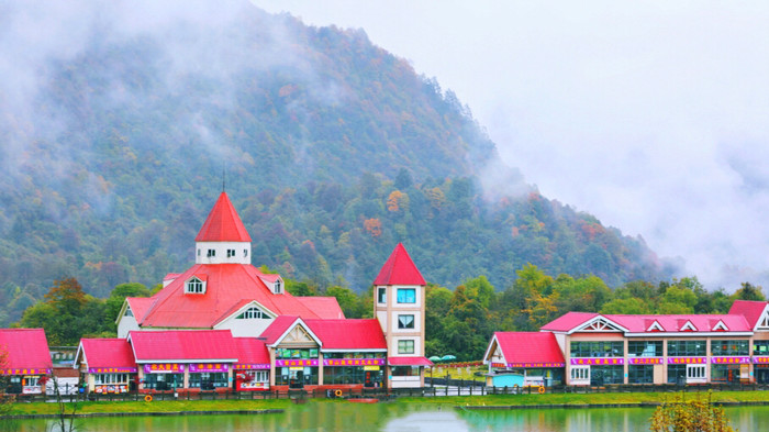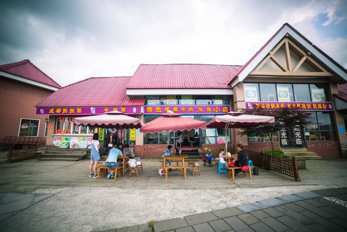 映雪广场又称二平台,这里有四家酒店,游客大多会选择住在这里。周边有一个映雪湖,还有小吃一条街,都是尖顶的白墙红房子。