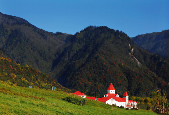 花水湾距离西岭雪山不到半小时的车程,先到游客中心,乘坐鸳鸯池索道,再乘坐景区免费摆渡车到映雪广场。