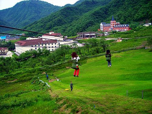 这个季节二平台有很多游玩的项目,可以滑草、溜索、坐热气球俯瞰山景,还有小朋友可以玩的,荡秋千、跷跷板……