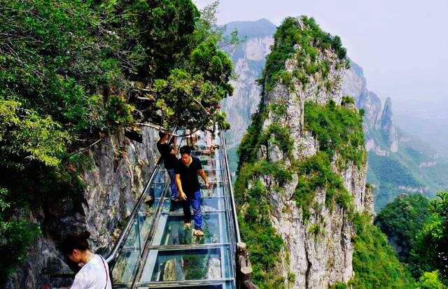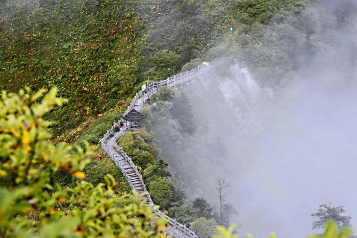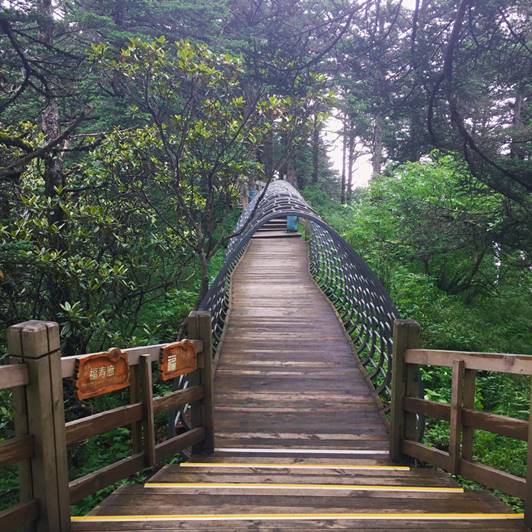 经过一段陡峭的石梯后就到了高空吊桥,吊桥名为“仙侣牧云桥”——意为神仙眷侣在云端放牧。