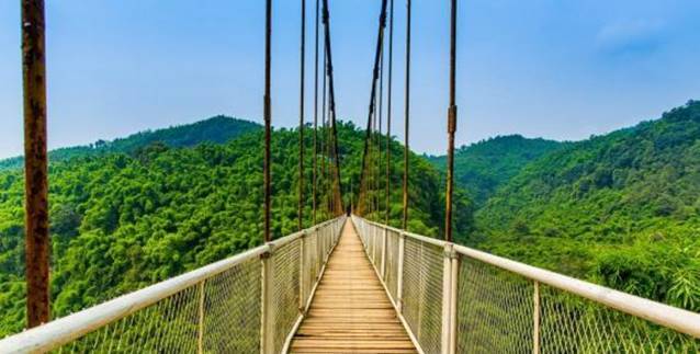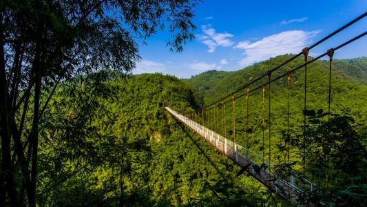 整座桥长约300多米,高160多米,横跨峡谷。走在桥上,晃晃悠悠的,一开始会胆战心惊、头晕脚软,走着走着习惯了就不害怕了,站在桥中央,俯瞰竹海,风起竹舞,山随竹动……此情此景,又怎一个“震撼”了得。