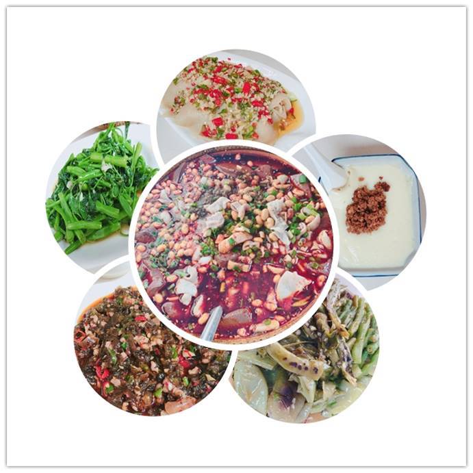 我们点了,(名字记不太清了,大概就这些)肥肠血旺、地木耳、蒸蛋、炒青菜、凉拌毛肚,自己打了一些自助菜。