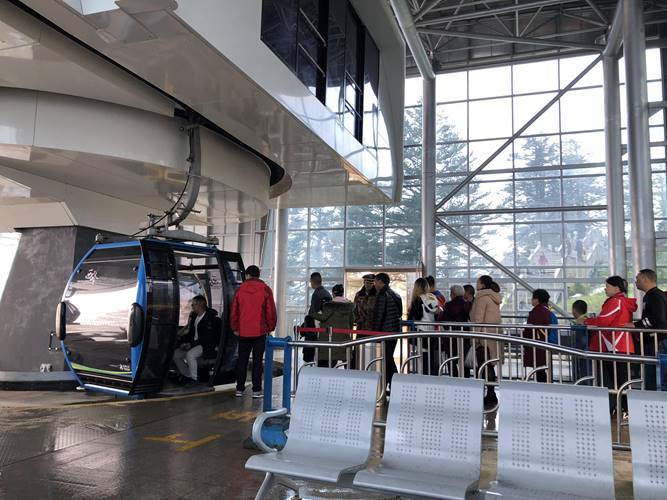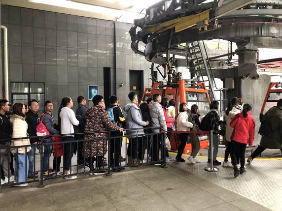 第一段索道的价格是60/人,每个吊箱可坐8个人,全程大概二十分钟左右,国庆节人真的巨多,显然我低估了大家的兴致。