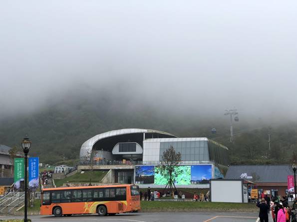 从索道下来,并不是直接就到达了二平台,而是要乘坐景区的摆渡车才能到,大概要坐20分钟的样子,摆渡车每隔10分钟发一趟。(摆渡车就有点像那种巴士公交)