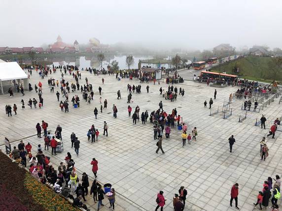 人还是超级超级多,天气阴沉沉的,雾蒙蒙的,我们围绕着映雪广场转了一圈,基本上都是人,小孩。室外的低温好像丝毫不能影响人们的热情。