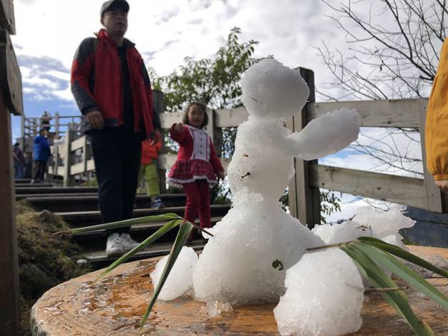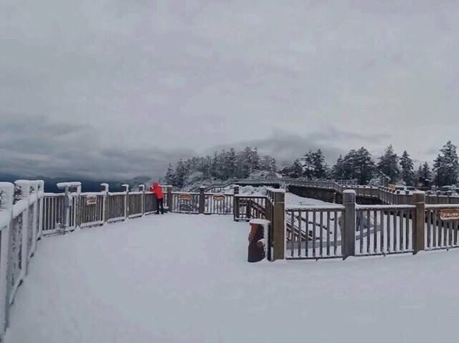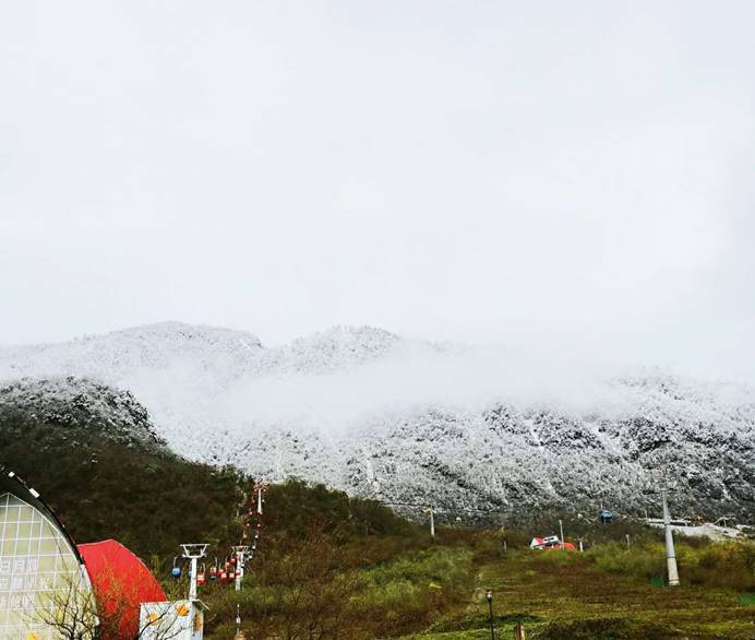 第二天一早起来,发现山尖上白茫茫一片,很多人都说三平台下雪了~大家都迫不及待的坐缆车上去玩雪。这才十月伊始,所有人都有点不敢相信自己的眼睛。