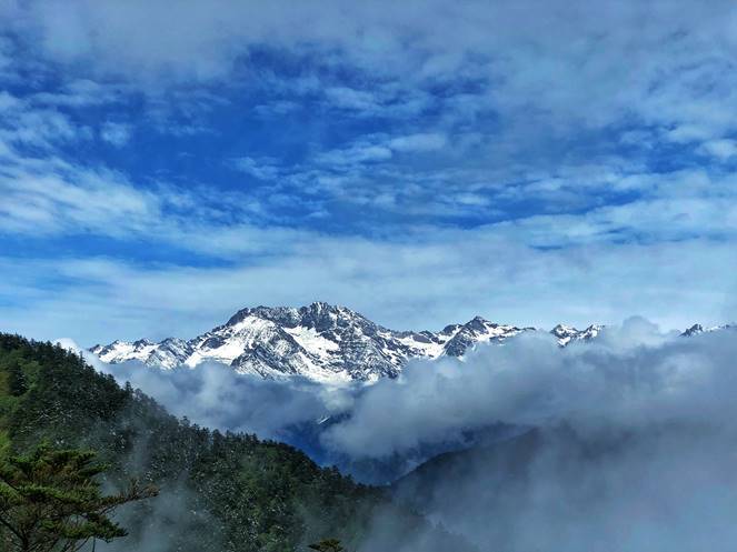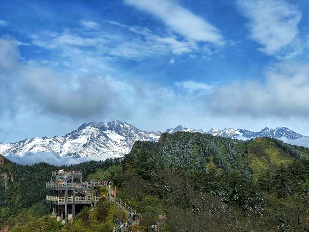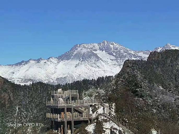 十月还是深秋,西岭雪山就已经换上一袭银装。这样绝美的雪景当然是每一个游客都不想错过的惊奇,三平台上已经是密密匝匝的游客了。