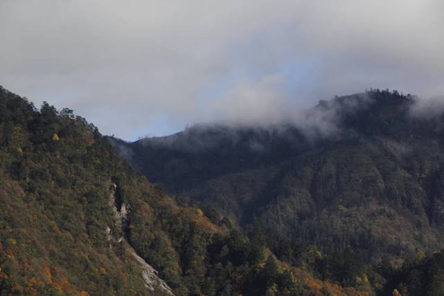 从成都出发,不过2个半小时的车程就到了西岭前山。虽已快到午时,但山间晨雾还未完全散去,太阳爬上中天,却不过是一团浅黄的湿晕。几十万亩的原始森林和延伸蜿蜒的河谷,得天独厚的自然地理条件,形成独特的气候坏境:暖湿的水面与冷空气形成若即若离的一层薄雾,峡谷水汽充足不易扩散,溪流水面蒙上了一层朦胧轻纱。