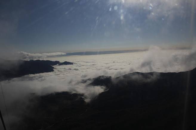 5.5公里的登山徒步,在湿润的雾中走完了,下山途中,雾渐渐散去,四周恢复了山朗水清。从山脚往山上看,山中一片白雾蒙蒙,“只在此山中,云深不知处”说的大概就是眼前的景象吧。