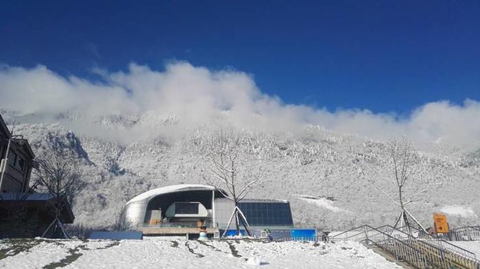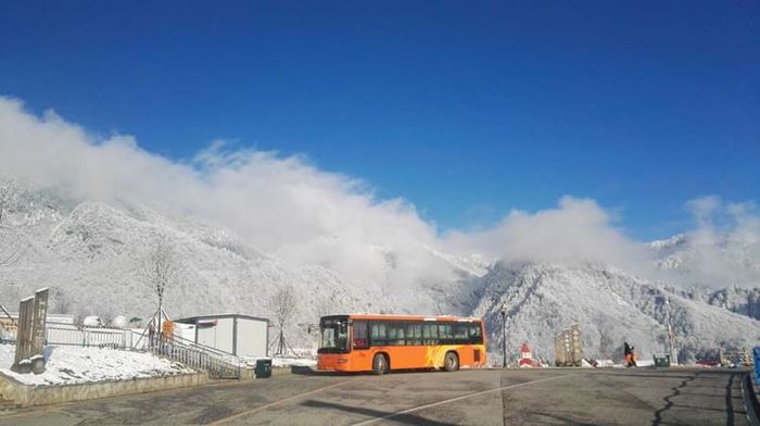 从成都出发,坐两个多小时的大巴车就到了我们此行的目的地——西邻雪山。在山脚坐索道一路向上,去往滑雪场。