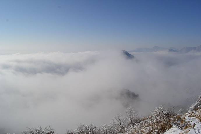 继续向前走是红石堡,尽头便是阴阳界,听说在还没下雪的时候,幸运的人可以看到一边晴朗一边阴天。阴阳界既是山峰,又是两种截然不同气候的分水岭。一边是晴空万里,湛湛蓝天;一边是云蒸雾涌,朦朦胧胧。景色有多神奇,亲眼见了你就会感受到。