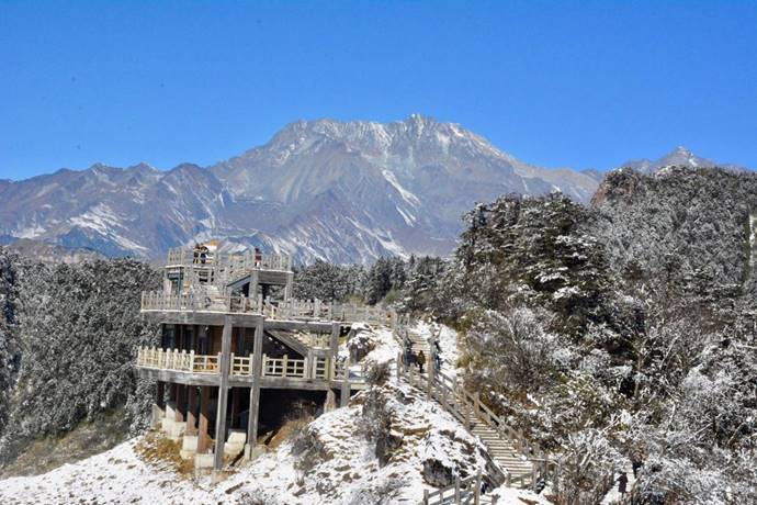 北方的雪太过粗犷,大雪纷纷落下,如白色帘幕将大地整个儿罩住,世界茫茫一片,缺了几分灵动婉约的浪漫气氛。而南方的雪,又太过斯文,如风吹柳絮,如琵琶遮面,一场雪后就寻不见它的身影了。只有西岭雪山的雪,不失豪放,又兼具轻柔,将两者完美地结合在一起,大自然把冬天最洁白的冰雪、最湛蓝的天空都赐予了西岭雪山。