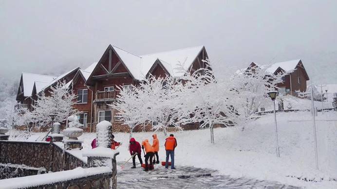 当坐索道下山的时候,看着雪离我们越来越远,山下树林的苍绿扑面而来,准备下山,去花水湾温泉赴一场火热温暖的相约。一家人泡在热气腾腾的温泉水里,感受一秒回夏的温暖,恐怕是这个初冬最幸福的事了。