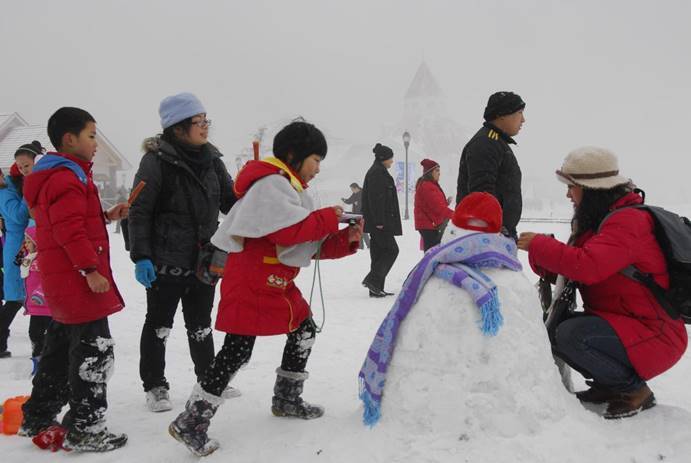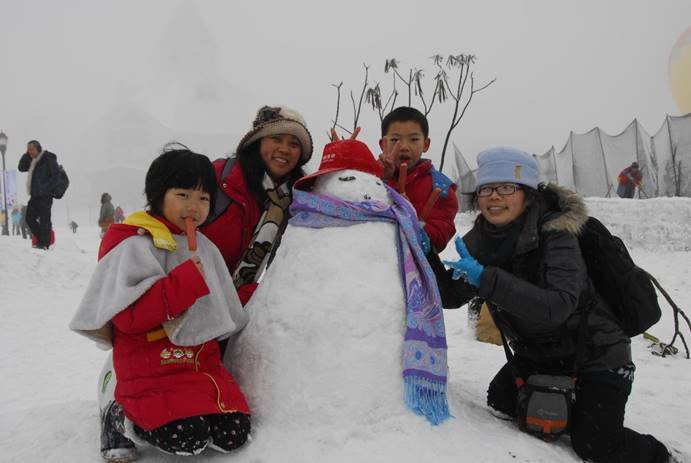 看着自己的杰作,小朋友们纷纷跑去跟雪人小伙伴合影,女儿说,妈妈,我要是能带回去就好了。孩子的世界,就是想尽可能更久的留住眼前的快乐,特别是自己亲手创造的快乐,这更有意义,我没法答应她,只能让她跟小雪人多呆一会儿,延长下山回家的时间。