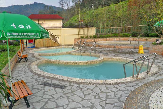花水湾的部分酒店可以不用住宿只买温泉票。花水湾有室内温泉和室外温泉,室内温泉私密性较好,但选择室外温泉可以从山脚观赏雪后蓝天下晶莹的西岭雪山,还有四周深秋残留的浓墨重彩。