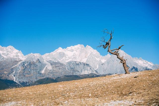 很喜欢这棵枯树,树干造型独特,在雪山和蓝天的衬托下,拍出来真的是炫酷无比。