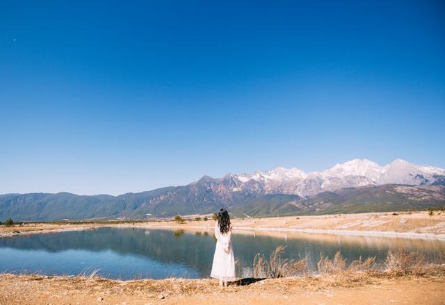 玉龙雪山景区附近有甘海子,而这个拍摄点有大片的水池,天气好的时候,湖面清晰的倒映着远处的玉龙雪山,十三峰逶迤蜿蜒,犹如一条腾空翻跃的白龙,随时准备着跃入奔腾不息的金沙江中。