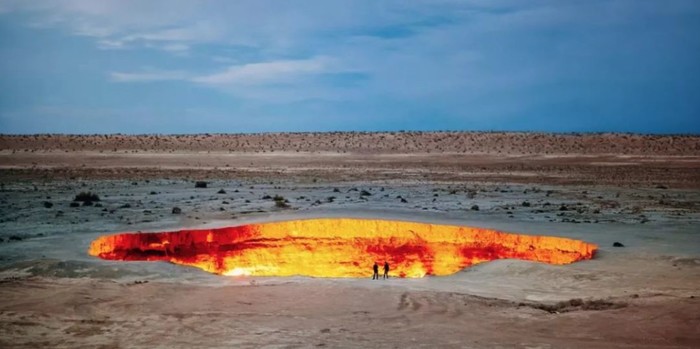 1971年,前苏联的地质勘探专家在这里发现了天然气。由于钻探中的失误,担心大量气体泄露引发安全问题,于是,一把火将其点燃。然而没想到的是,源源不断的天然气让这把火燃烧至今。