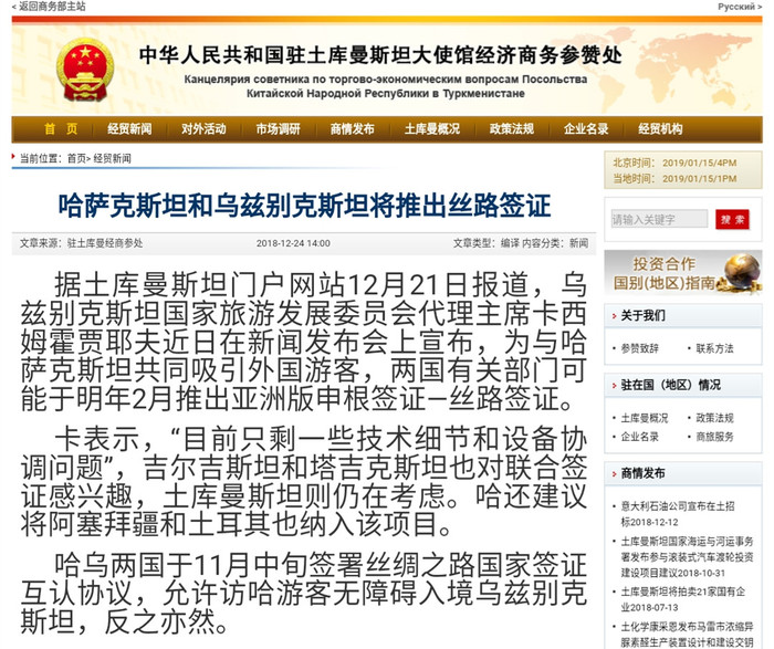 据中国驻土库曼斯坦大使馆消息,乌兹别克斯坦和哈萨克斯坦可能于今年2月推出亚洲版申根签证 — 丝路签证!也就是说,一个签证可以游玩乌哈两国!