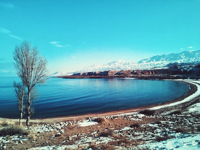 水面海拔高度1600余米,面积6300多平方公里,在世界高山湖泊中水深居第一、集水量居第二。湖水清澈澄碧,终年不冻,是中亚地区旅游疗养的胜地。