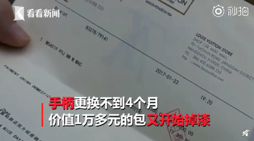 @看看新闻KNEWS:杭州的王先生2017年1月在万象城花1万元购买了个路易威登手提包,用了两次后,手柄出现掉漆,店家免费更换后三四个月,又开始掉色,而他另一只在澳门买的该品牌手提包也出现同样问题。对此,路易威登上海总部给的解释则是,它们每款产品都由植物染料所做,个别时候会有掉色情况,系与中国水土问题有关。目前,该公司已答应给王先生的手提包免费更换部件,但另一只澳门买的包需发到上海进行检测后再给出回复。