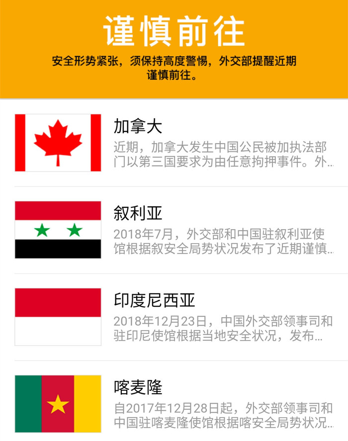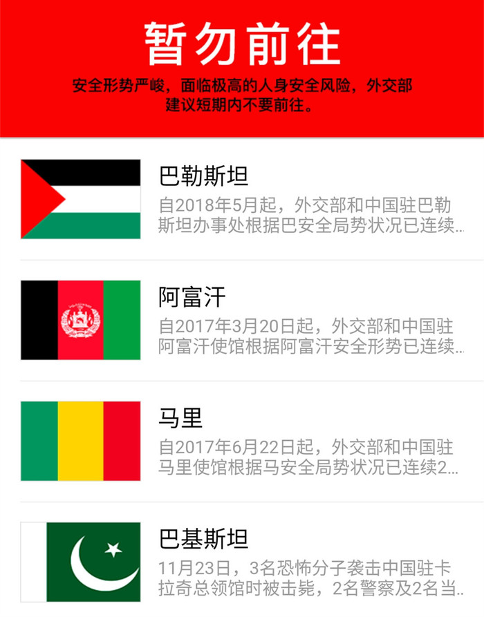 列出的国家安全形势严峻,人身安全没有保障,建议小伙伴们不要以身试险。