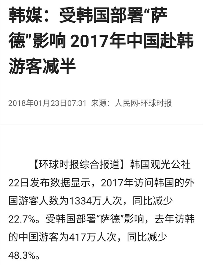另外,自从萨德事件发生了,国内不少旅行社、OTA平台下架了下架所有赴韩跟团游、自由行等所有涉韩旅游产品。取消跟团游对韩国旅游一块的影响应该是蛮大的,因为自由行只要有护照+签证,想去就去没人能拦住,而跟团游,只要旅行社不出团,也就没办法去。