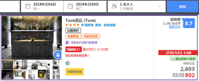 可原本来计划去香港疯狂买买买,如果把钱花在酒店上又有点儿舍不得呢。
