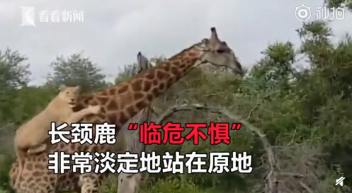 硬核!被咬4小时僵持不下 长颈鹿最终一脚把狮子跺跑了