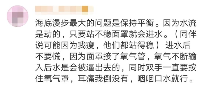 虽然危险但并不表示“海底漫步”不能玩。如果真的想尝试海底漫步,一定要选择靠谱的店铺以及靠谱的教练,更重要的是玩之前先了解清楚海底漫步的危险性,以及提前跟教练学习好各种水下手势。