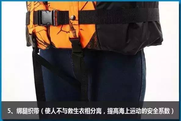 在必要的时候,救生衣就是你的救命稻草。出海玩不光要穿救生衣,还一定要把大腿根的那两根带子固定好,如果只是像穿马甲一样套在身上的话是没有用的。